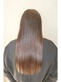 ロングストレート。縮毛矯正をかけた後、期間をあけてからのイノアカラー。アンモニア無配合なので、頭皮や髪に低刺激でダメージレス。オイルが主成分のオイルグロスカラーだから圧倒的な艶感。