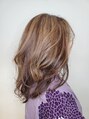 セミディレイヤー。サイドからバックにかけラウンドさせたレイヤースタイル。明るいイノアカラーとハイライトの組み合わせ。アフターケアにケラスターゼクロノロジストキャビアトリートメント施術。