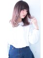 高めの位置からのグラデーションカラーです。色味を感じるグラデーションは高い位置から入れても可愛いデザインになるのでお勧めです。顔周りは少し前髪を減らしてサイドに流せるようにカットしてあります。