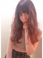 ブリーチをベースに根元からナチュラルなグラデーションをつくっています。1色のカラーに飽きてしまった方などにオススメです。前髪は目上ギリギリのラインで小顔にみせます。