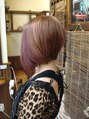 前下がりのグラデーションボブ。極端に角度を付けたことで、よりSexyに!また、左サイドのカラーを変えてあるのでフロントの分け方によって、印象も変わってくるので普通のカラーに飽きた人にもオススメ☆