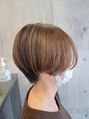 襟足は短く、耳隠れるギリギリくらいの長さにやや前下がりに切ったハンサムショートです。内側の毛を耳にかけるとスッキリします。