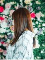 毛先までまとまりのあるストレートロング。あまり全体を軽くせずに、重さを残していくのがポイント。毛先はまとまりやすい程度にレイヤーをいれて、自然と毛先が細くなるように調整しています。