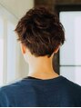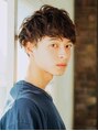 サイドをタイトに、襟足からナチュラルにつながるラインで刈り上げなのに柔らかさのあるパーマスタイル。フロント部分に大きくカールの動きがくるように巻いたのがポイントアッシュ系カラーでカッコ良く、柔らか髪に!