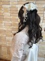 袴ヘア。ロングヘアをいかしたハーフアップ。直毛でカールが取れやすいとのことだったのでランダムな、たて巻きスタイル
