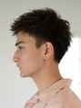 マッシュベースのツーブロックをベースに、ふんわり毛先パーマをプラス。長めに残した前髪をアップバングにセットすることで大人っぽい印象に。【EARTH三軒茶屋店】