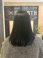 根元と毛先で薬剤を調整し、自然なストレートに仕上げた縮毛矯正。ツヤ感が増し、扱いやすさもアップします。