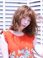 切りっぱなしのミディアムボブに波ウェーブでパーマをかけた夏らしいスタイル。毛先は外巻きにして、ラフなふわっと感を出したのがポイントです。前髪にもカールを入れて、軽さを出して。【EARTH大井町】