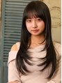 20代30代/デザインレイヤー/うぶバング/ぱっつん前髪/暗髪ロング/ストレートロング/艶感カラー/ダークブラウン/地毛風カラー/透明感/ツヤ/ナチュラル/学生ヘア/抜け感/くびれヘア/ローレイヤー/小顔/フェミニン/こなれ感/縮毛矯正/髪質改善トリートメント