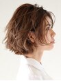 外国人風のクセ毛ボブ。細めのロッドで毛先を逃してランダムにかけたニュアンスパーマが効いた、大人に似合うスタイルです。毛先にはスライドカットで動きと抜け感を出しています。