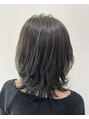 サイドから襟足にかけてインナーに、ネイビーブルーをオン!全体は相性の良いアッシュで可愛いネオウルフスタイルの完成です(o^^o)顔まわりは軽めに、インナーブルーが見えるバランスを考えた段の入れ方がポイント。小顔効果アップ!!