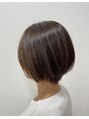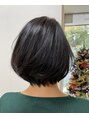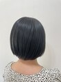 6レベルのダークトーンです^o^ 透明感のある青みがかったサファイアアッシュは、色白さんにピッタリ^o^耳周りのインナーには、パールシルバーを!カラーはクールですがミニボブの可愛らしさとバランス◎!!
