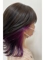 インナーにカラーバターを使用^o^ブリーチ(2回)のベースですとよりしっかり発色します。全体は8レベルのサファイアアッシュでパープルとの相性◎!退色過程も綺麗です。下ろしている時はインナー部分が目立ちすぎないようなミディアムレイヤーに^o^