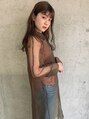 ロングレイヤースタイル。適度な厚み、軽い空気感を創り扱いやすく纏まりやすい髪に。しっかりと透けてツヤのある質感のアイスベージュで、赤みも感じず柔らかい仕上がり。ダメージレスで褪色も楽しめるカラー。