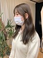 顔まわりのシースルーバング、韓国風の後れ毛レイヤーで印象を作り、全体はぷつっとカット、表面、ミドルに低めのレイヤーでゆるく巻いた時にニュアンスが出るように。ブリーチを使わずにハイトーンのベージュカラーを作りました!ラベンダーで透明感を。