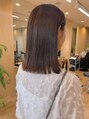 ロングからストンとまとまるミディアムにチェンジ!髪質改善で広がりやウネリを抑え、乾かしただけでまとまるサラサラヘアに♪アイロンは使用していません。カラーは艶感のあるラベンダーブラウン