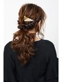カンタン&ゴージャスに見えるローポニーアレンジ。くるくるとねじったサイドの毛を、低めに作ったポニーテールにまとめ、トレンドの三角バレッタをアクセントにつけます。毛先と後れ毛の強めカールが可愛さのポイント。【EARTH新松戸店】