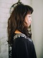 まゆ下のバングにカールをつけて短めに見せた可愛めなスタイル。柔らかめなくせ毛風になるように全体を巻いてアンニュイなイメージに。カラーリングはオレンジ系のダークブラウンでツヤと秋冬っぽい深みを出しました。