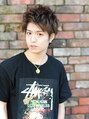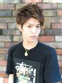 マッシュショートに流し上げたハーフアップバングが爽やかなスタイル!無造作パーマでスタイリングも簡単!!