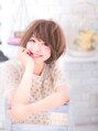 ナチュラルな可愛さのフェミニンボブ。トップがふんわりひし形フォルムで小顔に!ツヤ感と透明感のあるベージュカラーがオススメです。
