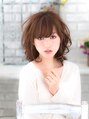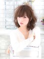 全体的にゆるいカールをつけてやわらかい雰囲気のミディアムボブ。プラチナアッシュ、ベージュ系カラーで透明感をプラス!