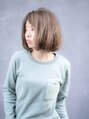 あごラインのひし形シルエットのボブに大きめカールを合わせた優しい印象のミディアムボブです。