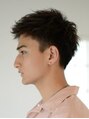 マッシュベースのツーブロックをベースに、ふんわり毛先パーマをプラス。長めに残した前髪をアップバングにセットすることで大人っぽい印象に。