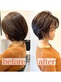 [K-two栄町/矢場町/栄]beforeの状態から、スッキリとしたフォルムのまるみショートボブスタイル。襟足は引き締めながらも、トップは ふわっと。自然に流れるようにレイヤーをいれる。ボリュームも出した 女性らしいショートボブスタイルです。