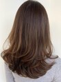 ふわっとボリュームのロングレイヤー小顔ヘアスタイル。