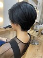 お客様スタイルです!カラーはアッシュのみで作ったブルーブラックで透明感のある黒髪になってます!カットはボブベースからバッサリハンサムショートに仕上げてます!毛先の動きや軽さをしっかりでるようになってます!
