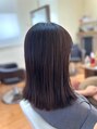 切りっぱなしラインですが、動きが出るよう毛量と毛先に軽さを入れます。髪質改善カラー×オージュア濃密保水「アルティール」×炭酸スパで地肌から髪から栄養たっぷり送り込みます。