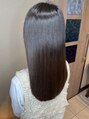 自然なツヤ感とまとまりを重視した美髪ストレートスタイル。髪質改善トリートメントで内部補修を行い、毛先まで指通りなめらかな仕上がりに