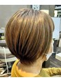 コンパクトなショートボブスタイルです前回のハイライトも残っている状態で今回はグレージュカラーをオンしましたナチュラルな立体感が出ました