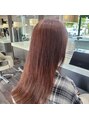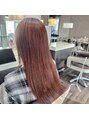 ピンクブラウン×切りっぱなしロング髪質改善カラー20代30代40代