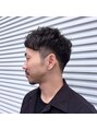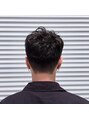 2ブロックベースで刈り上げ、フロントにかけて前下がりにカットし厚みをだす。ランダムにパーマをかける事でラフで無造作な質感に