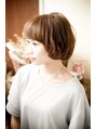 斜めバング、厚めバングなど似合わせカットで小顔に!簡単スタイリング可能でヘアアレンジしやすいショートリラックスボブです。やわらかカールが女性らしさを演出してくれます。