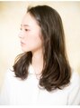 透明感ある雰囲気を前面に押し出したノーバングとワンカールなストレートが自然で大人かわいいナチュラルフェミニンな小顔セミディです!寒色ベージュカラーが透明感UP!黒髪、暗髪、ノームコア、エアウェーブ、無造作ウェーブ。
