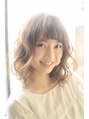 肩についてハネるのが嫌な人にも絶対おすすめ!スタイリング簡単な小顔Aラインシフォンミディアム!似合わせ小顔カットとふわふわカールが可愛い秘訣!ナチュラルな柔らかい雰囲気に!ふんわりバングにすると今っぽくて可愛い!【ohana/表参道】