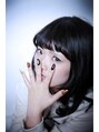 黒髪でも毛先にパーマがかかっているので柔らかな雰囲気に。