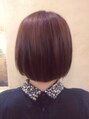普通のボブに飽きた方にオススメ!あえてブラントに切ったモードボブは、秋冬のイメージチェンジにぴったり。秋らしくブラウンの中にバイオレットの隠し味を入れました。カシスハーブティーのよう艶カラーで夏のダメージもカバー出来ます。