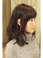 耳くらいからの大き目のウェーブで抜け感を出しました。カラーは赤系の色で落ち着かせて、ツヤと深みをプラス☆冬にピッタリな愛されヘアです♪