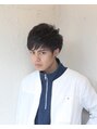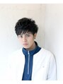 コンパクトマッシュなショートスタイルで、すっきり爽やかな印象に。サイドはツーブロックハチ下をソフトに刈り上げているのでセットも簡単に出来ます。