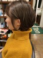 重さを残したショートボブです♪首のラインがすっきり見えるように量感調節しながらカットしています!ショートだけど量を取りすぎず、ボブっぽさを残してデザインしました。表面にレイヤー入れているので動きも出しやすいです♪