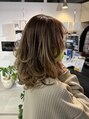 ハイライトを細かく入れたベースに髪の根本は深めのブラウン、中間毛先と明るくベージュ色にグラデーションさせた仕上がりです。 結んだり巻いたりで雰囲気変わります♪