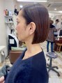 アシンメトリーなボブスタイル。ボブはボブでも、左が短く、右に行くにつれ長い、少し個性的でオリジナルなデザイン。カラーは、ブラウンレッドで素敵なカラーですよ。