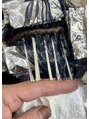ブリーチスタイルが飽きてきたので、フレーム・ハイライトカラーで。遊ばせながら暗めに戻します。前回まで2回ブリーチをしていますが、白くしたいとの事で、明るい所は。もう1度ブリーチします。ブリーチ部には、オフブラックでメリハリをつけます。