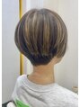 グレーカラー6トーンのベース幅お客様が、ブリーチ(2回)をハイライトで入れたデザインです。暗い色が飽きてきた方にオススメです。カットはショートレイヤーになります。