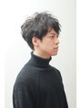 少し重さを残したパーマショートスタイル。襟足はスッキリさせて、爽やかさを演出。バングは重めにすることでモード感もプラス。