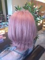 なるべく傷まないように、ケアブリーチで2ブリーチし、ベースをしっかりトーンアップさせて淡いピンクをオン