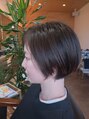 襟足を生え際ギリギリまでカット。表面の髪もその長さと同じぐらいにしかカットせず、その分毛量調整でしっかり落としているので、柔らかい丸みを出すことが出来ます。
